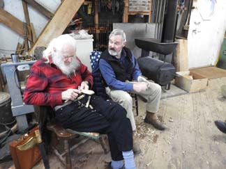 | For our February, we returned once again to our traditional Valentines weekend CarveIn hosted by Barb Taylor. Another all the ice then cold and snow in January,the weather cooperated with good day for our CarveIn. Roy served as the bus driver for the group of carvers coming down from central Vermont, so for Leo and those of us driving a longer distance, things worked out very well. We had 11 carvers attending. Dave brought along some cutouts for making Glittered Magic Mushrooms for a project. (he will have the glitter paint in April). A table was set aside for all the morning snacks that were brought along to carry us thru the morning, with the wood stove keeping us warm. In addition to carved Mushrooms, Matt was working on a Valentines Day spoon, along with Bill, Okliver and Dustin also carving spoons and Leo on a Santa face. Lunch call was made at noon so we headed to the house for hot vegetable soup and sandwiches. We had a short meeting after lunch, Barb rep[orted we are financially "solvent". We began discussing our August events and decided staying with the 3rd Saturday would seem to work best for most member's schedules. We will again be working with the Museum to offer our 3 day class and host the Annual Show. Back to carving, we worked till around 2 when several had to leave, cleaned up the Shop and headed home after a very good day of carving and conversation. | ![]() |