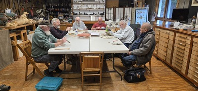 Members of the club meet the second Saturday of each month for a "Carve-In". The Carve-Ins' are held at members houses and shops across the state, and provide an opportunity for members to gather, work on a projects and share ideas. In addition to our monthly Carve-Ins, each August, the Club plans a week long series of events including a carving class, and our Annual August Show and Sale held in Waterbury Vermont.